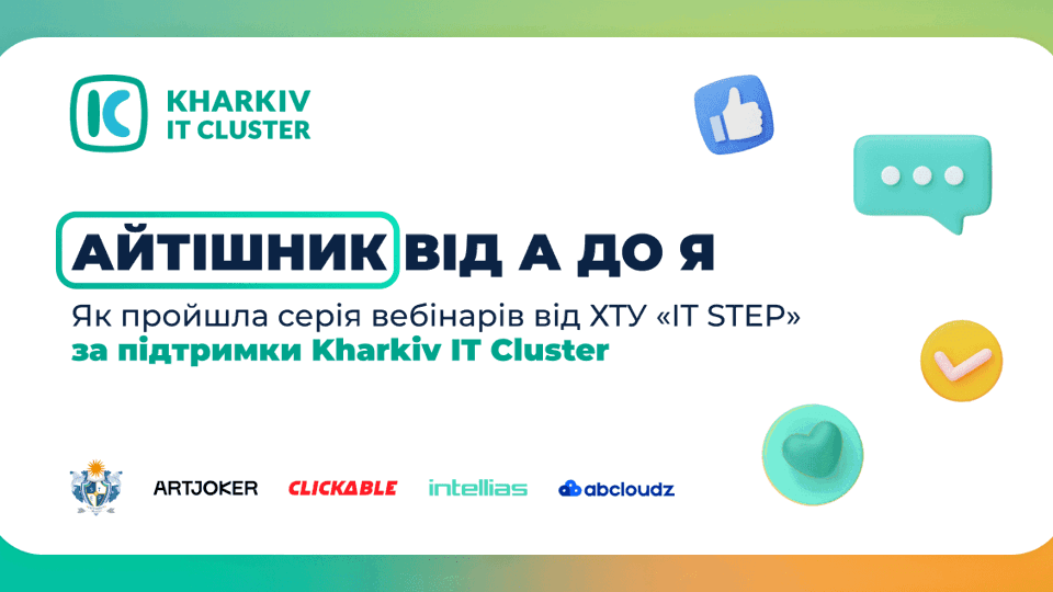 😎 Серія відкритих вебінарів «Айтішник від А до Я» від Харківського технологічного Університету «IT STEP» успішно пройшов за підтримки Kharkiv IT Cluster! Вебінари Харківського технологічного Університету «IT STEP» підтримали компанії-учасниці Харківського ІТ Кластеру: 👉до вебінару «Айтішник від А до Я. Розробка програмного забезпечення» доєднався Євген Чвєртков — Head of education department у компанії ARTJOKER. 👉 до вебінару «Айтішник від А до Я. Комп‘ютерна графіка та дизайн» доєднався Олександр Купрієвич — UI/UX designer у компанії Clickable Agency. 👉 до вебінару «Айтішник від А до Я. Менеджмент в ІТ» доєдналися Катерина Шевченко, Strong Middle Product Owner у компанії Intellias, та Андрій Коваль, Digital Marketing Team Lead у компанії ABCloudz. Спікери розповіли учасникам детальніше про: ⭐️ свої спеціальності; ⭐️ компанії, в яких працюють; ⭐️ те, що чекає в цій професії майбутніх спеціалістів; ⭐️ навички, які цінуються в кожній ІТ-сфері. Kharkiv IT Cluster дякує Харківському технологічному Університету «IT STEP» за розроблені вебінари про ІТ-професії для абітурієнтів, та ІТ-компаніям ARTJOKER, Clickable Agency, Intellias та ABCloudz за підтримку розвитку майбутніх ІТ-спеціалістів!