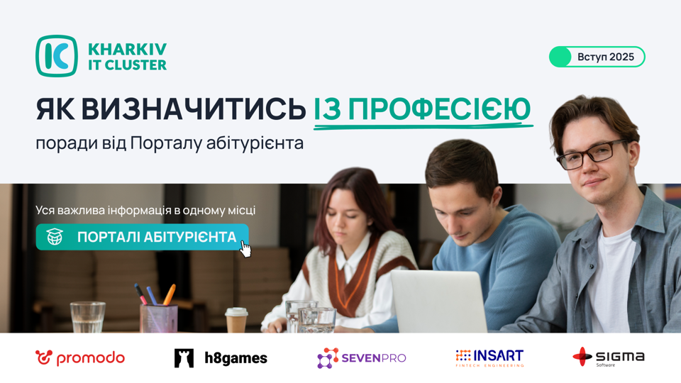 Дякуємо компаніям Promodo, h8games, SevenPro, Insart та Sigma Software — партнерам Kharkiv IT Cluster за підтримку нашого проєкту.