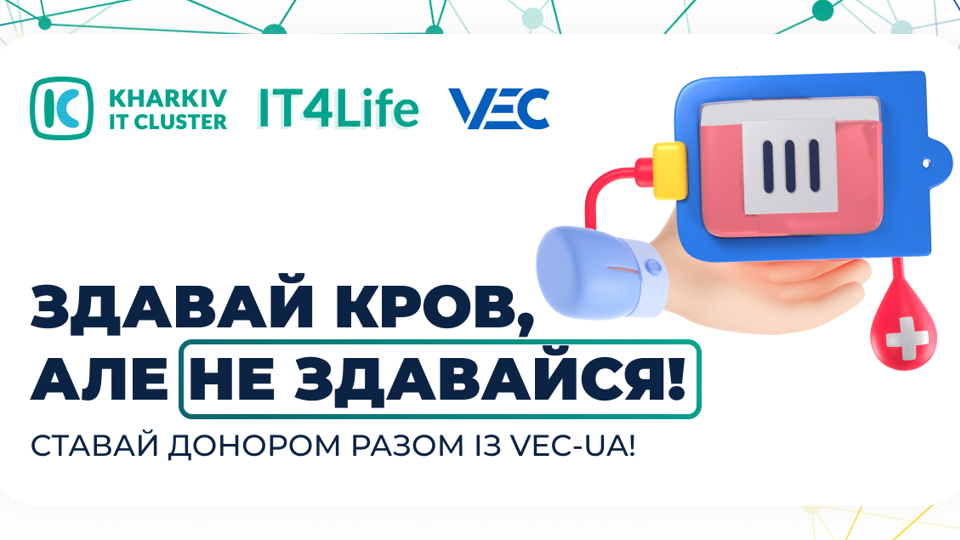 - Після здачі крові, скажи реєстратору кодову фразу «Я від VEC-UA» та отримуй подяку від компанії.