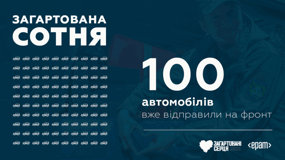 IT-компанія EPAM Україна та ГО «Загартовані серця» завершили проєкт з передачі 100 евакуаційних автомобілів захисникам. Це партнерство суттєво допомогло підтримати різні підрозділи Сил оборони на передовій. Проєкт «Загартована сотня» стартував у червні 2022 року, а остання машина з цієї сотні вирушила на фронт у квітні 2024 року. EPAM виділила на придбання та ремонт машин понад 30 млн гривень. Близько 1,5 млн гривень зібрали в рамках фандрейзингу, серед яких 300 тисяч - від спеціалістів компанії. Окремим етапом збору стала інформаційна підтримка проєкту від українських блогерів: Alyona Alyona, Нікіта Добринін,