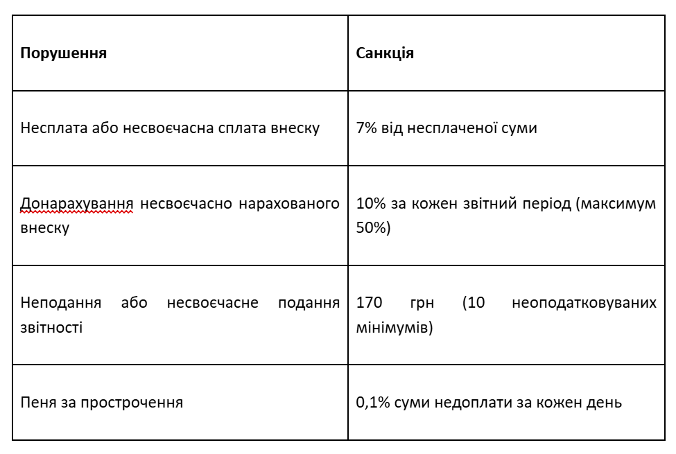 Недотримання гарантій для осіб, які виконують військовий обов'язок – 4 МЗП. Для ФОП та юр. осіб на єдиному податку 1-3 груп передбачено попередження .
