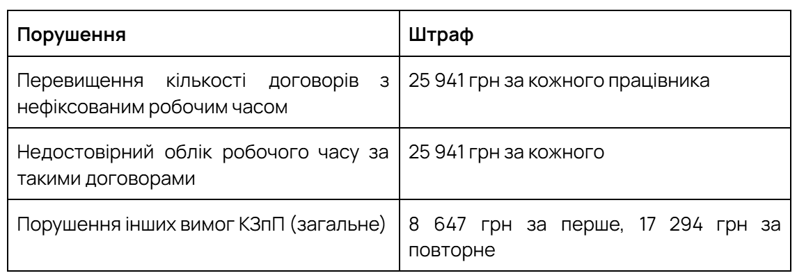 Усі штрафи за порушення законодавства про працю прив'язані до мінімальної зарплати. З її зростанням до 8 647 грн санкції збільшилися пропорційно. Одна помилка в оформленні працівника може коштувати компанії майже 90 тисяч гривень. А повторна – понад 250 тисяч.
