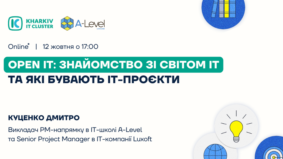 Доєднуйся до заходу та дізнавайся нове разом із нами! Kharkiv IT Cluster та IT-школа A-Level чекають саме на тебе на вебінарі.Підпишись на наш телеграм канал, щоб бути у курсі подій