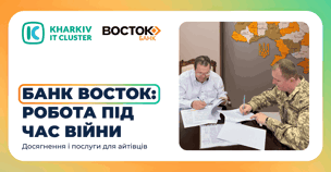 Читати повністюKharkiv IT Cluster з 2015 року об’єднує провідні IT-компанії, місцеву владу та вищі навчальні заклади для впровадження комплексних змін в IT-сфері. Банк Восток — партнер Харків...