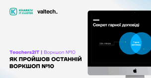 Читати повністю📆 22 грудня Kharkiv IT Cluster разом з компанією Valtech завершили проєкт Teachers2IT, провівши останній 10 воркшоп у рамках 10 online-воркшопів для підвищення кваліфікації. З...