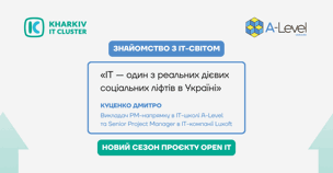 Читати повністю12 жовтня Kharkiv IT Cluster запустив новий сезон проєкту Open IT На першій зустрічі Дмитро Куценко, викладач PM-напрямку в IT-школі A-Level та Senior Project Manager в IT-комп...
