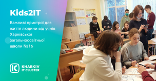 ✍ 29 листопада Kharkiv IT Cluster відвідав Харківську загальноосвітню школу №16. У школі відбулася гра з учнями 9 класу. На початку гри діти генерували ідеї пристроїв, які прино...
