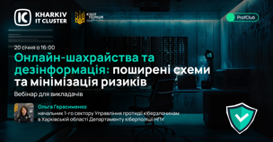 Читати повністюKharkiv IT Cluster запрошує викладачів, управлінців та всіх зацікавлених на практичний вебінар, присвячений протидії онлайн-шахрайству та дезінформації. Під час заходу ви д...