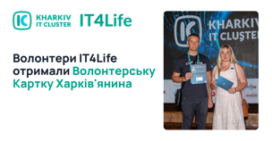 Читати повністюВолонтери IT4Life Віктор Крот та Олена Лоєнко отримали Волонтерську Картку Харків'янина! Це визнання волонтерської праці та відданості, яке приносить значну користь нашому місту...