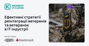 Читати повністюRazomTech — проєкт від Kharkiv IT Cluster та EPAM Україна, який спрямований на підтримку ветеранів та ветеранок у їхньому поверненні до цивільного життя. У межах проєкту ми тран...