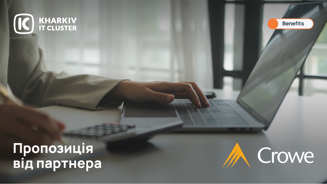 Як це зробити? Звернися до контактної особи Kharkiv IT Cluster або відправ запит на пошту info@it-kharkiv.com. Трансформуй ІТ-індустрію разом з Crowe Ukraine та Kharkiv IT Cluster.