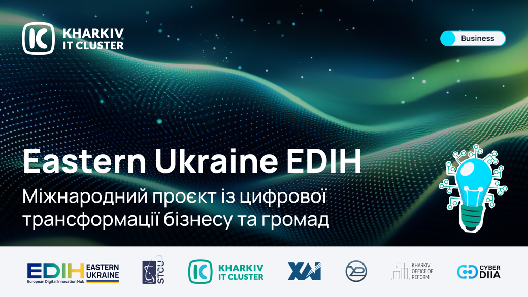 Eastern Ukraine EDIH (European Digital Innovation Hub) — це міжнародний проєкт, метою якого є підвищити конкурентоспроможність українського реального бізнесу та громад сходу України шляхом цифрової трансформації.