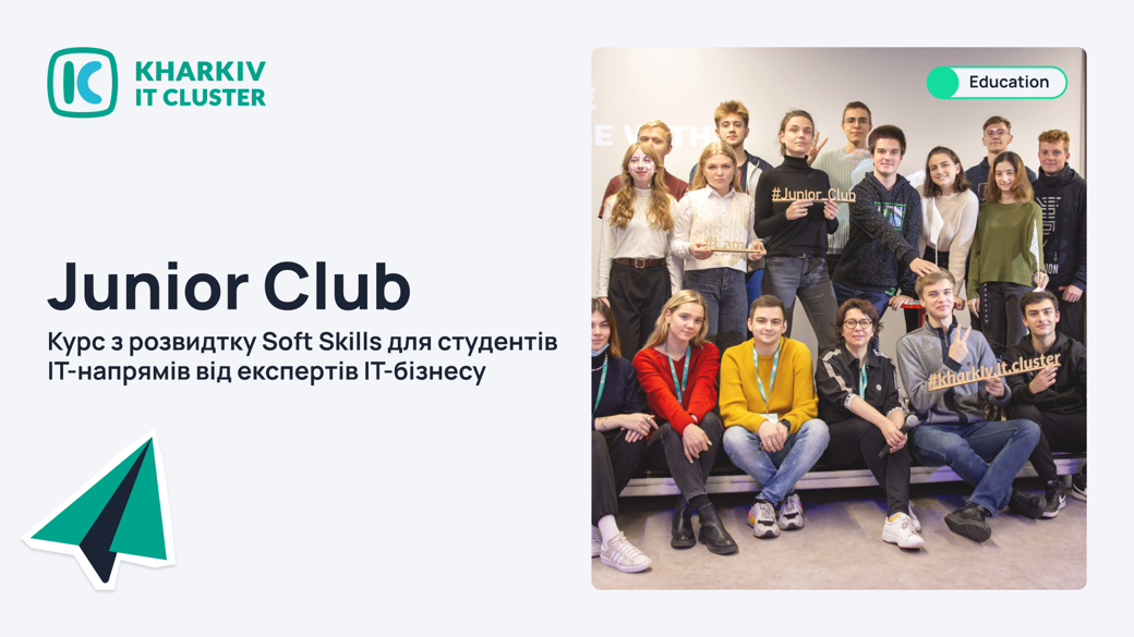 Junior Club by Kharkiv IT Cluster — це унікальний закритий клуб, створений для формування community молодих IT-спеціалістів. Це дає змогу підвищити експертність молоді у сфері IT та прокачати їхні soft skills. Основна цільова аудиторія клубу — студенти технічних спеціальностей ЗВО міста Харкова та України. Проте тренінги у закритому клубі будуть корисні як початківцям, так і спеціалістам з практичним background.