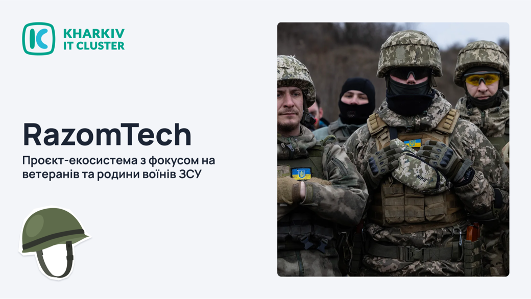 Спільнота Kharkiv IT Cluster є провайдером змін у суспільстві щодо активної роботи з ветеранами й розглядає їх, як цінних фахівців із великим потенціалом. Саме тому в 2023 році був запущений проєкт з побудови екосистеми Tech-ветеранського ком’юніті — RazomTech. Головним партнером проєкту стала ІТ-компанія EPAM Ukraine.
