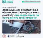 Харківський ІТ Кластер запрошує ІТ-викладачів закладів освіти та всіх охочих до обговорення рецензованого силабусу дисципліни «Інженерія вимог до програмного забезпечення» у межах проєкту «Система сертифікації ІТ-дисциплін».Під час заходу ви матимете можливість отримати кейс практичних рекомендацій від експертів ІТ-компаній щодо змісту програми дисципліни, а також поставити питання й отримати відповіді під...